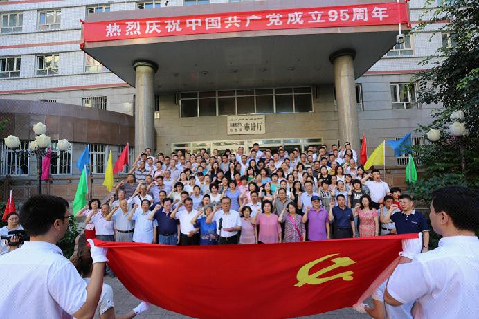 7月1日早晨,阳光明媚,晴空万里,新疆审计厅机关大院,彩旗招展,火红的太阳映照着鲜艳的党旗;各族党员脸上洋溢着幸福和喜悦;“没有共产党就没有新中国”昂扬的音乐旋律令人激动振奋。今天是一个特殊的日子,审计厅全体党员干部迎来中国共产党成立95周年的光辉和神圣。