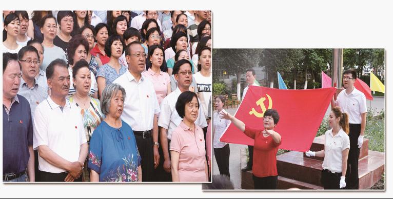 面对庄严肃穆的党旗,全体党员齐声高唱“没有共产党就没有新中国。”是啊,中国共产党领导中国走向了光明,改善了人民的生活。这次活动提振了全体党员干部的精神,凝聚了心力。